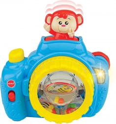 Aparat fotograficzny z wyskakującą małpką jest wspaniałą zabawką dla dzieci od 9 miesięcy, która łączy zabawę i naukę. Ten zabawowy aparat z kolorowymi światłami i dźwiękami jest idealny do rozwijania zdolności sensorycznych dziecka.