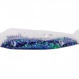 - Zmienia kolor w zależności od padania światła i jest pełen brokatowych cząsteczek.