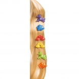 Zestaw siedmiu zabawnych spinek w różnych kolorach i kształtach do łatwego zdobienia fryzur i figlarnego wyglądu.