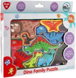 W zestawie znajduje się wzór, który pomaga w prawidłowym rozmieszczaniu elementów na płycie. Poszczególne dinozaury można wykorzystywać także poza płytą bazową do swobodnej zabawy i opowiadania historii. Solidne drewniane wykonanie gwarantuje długą żywotność i bezpieczną zabawę.