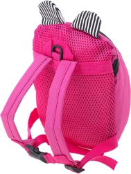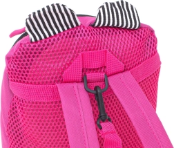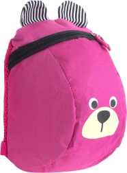 Przyjazna buzia misia i prążkowane uszka zachęcają dzieci do noszenia plecaczka i dbania o swoje rzeczy.