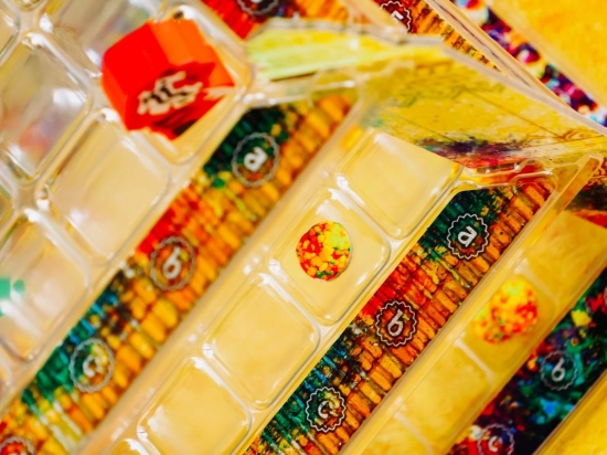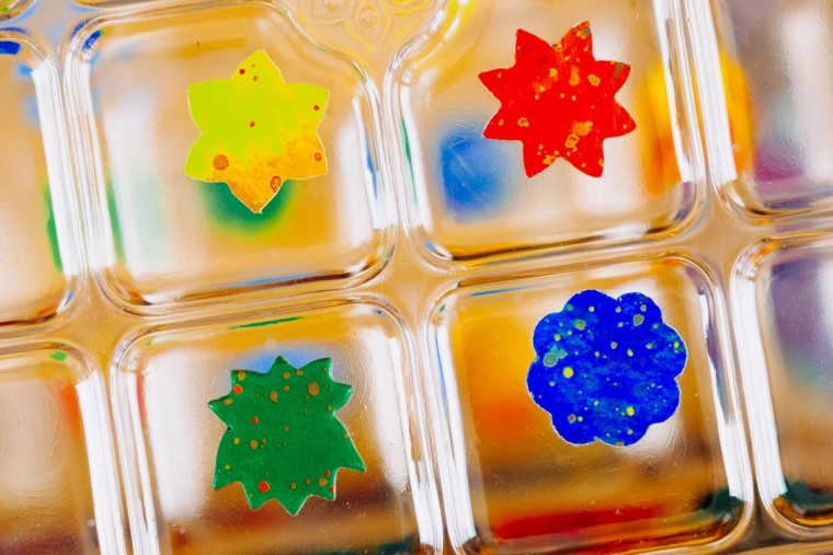 Logiczna gra z trójwymiarową planszą o rzucaniu kolorowym proszkiem.