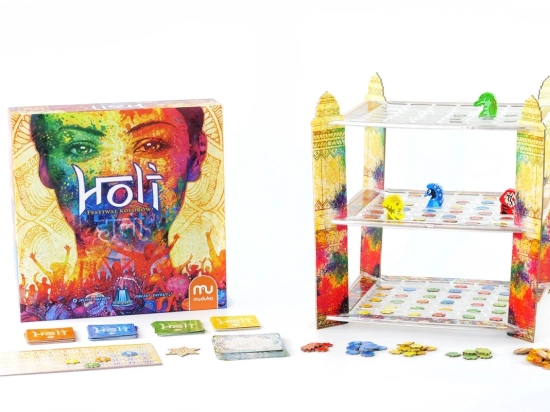 Holi. Festival of Colours to wyjątkowa abstrakcyjna gra logiczna z mechaniką kontroli obszaru. Gracze zagrywają karty akcji i rozmieszczają swoje kolorowe żetony na planszy. Piękne ilustracje, trójwymiarowa plansza i zmienne zasady to elementy, które czynią Holi niezwykle interesującą grą.