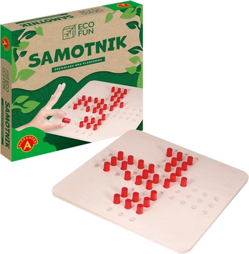 Gra logiczna, która stanowi prawdziwe intelektualne wyzwanie. Kluczem do sukcesu są proste zasady – celem gry jest usunięcie wszystkich pionków z planszy (może pozostać tylko jeden). W każdym ruchu można wykonać tylko jedno posunięcie: pionek może przeskoczyć inny pionek poziomo lub pionowo i zająć puste pole za nim. Przeskoczony pionek zostaje usunięty z planszy. Wszystkie elementy są wykonane z drewna, co zapewnia jeszcze większą stabilność, świetną zwłaszcza podczas podróży.