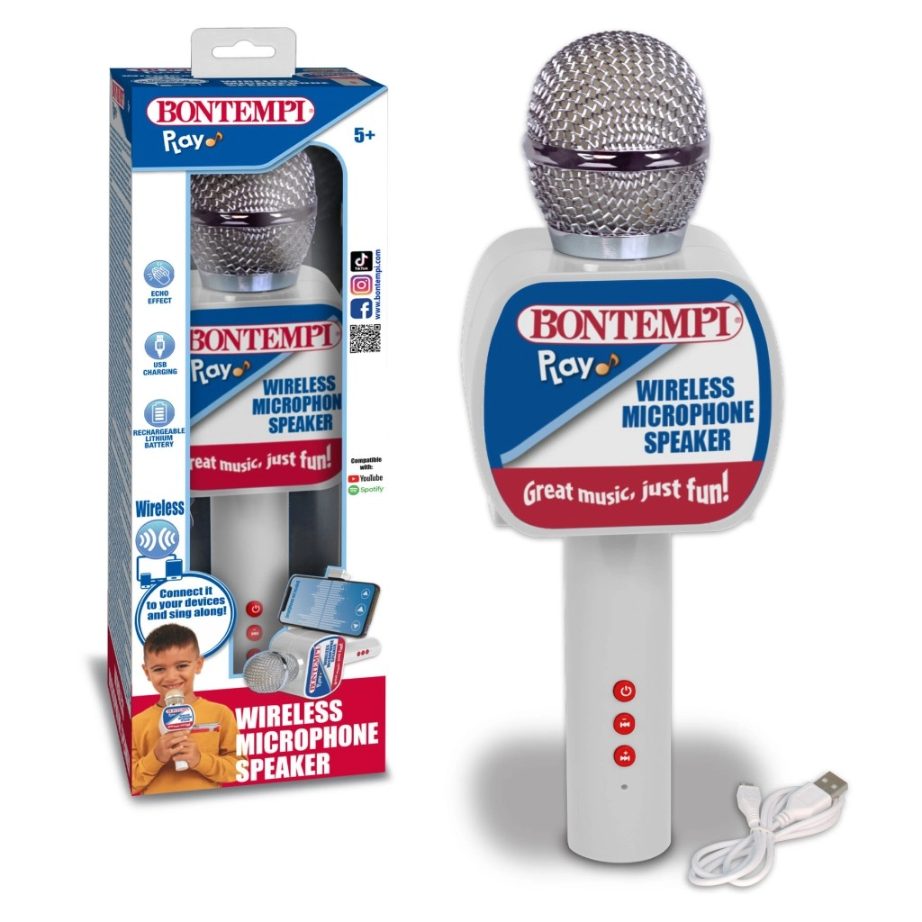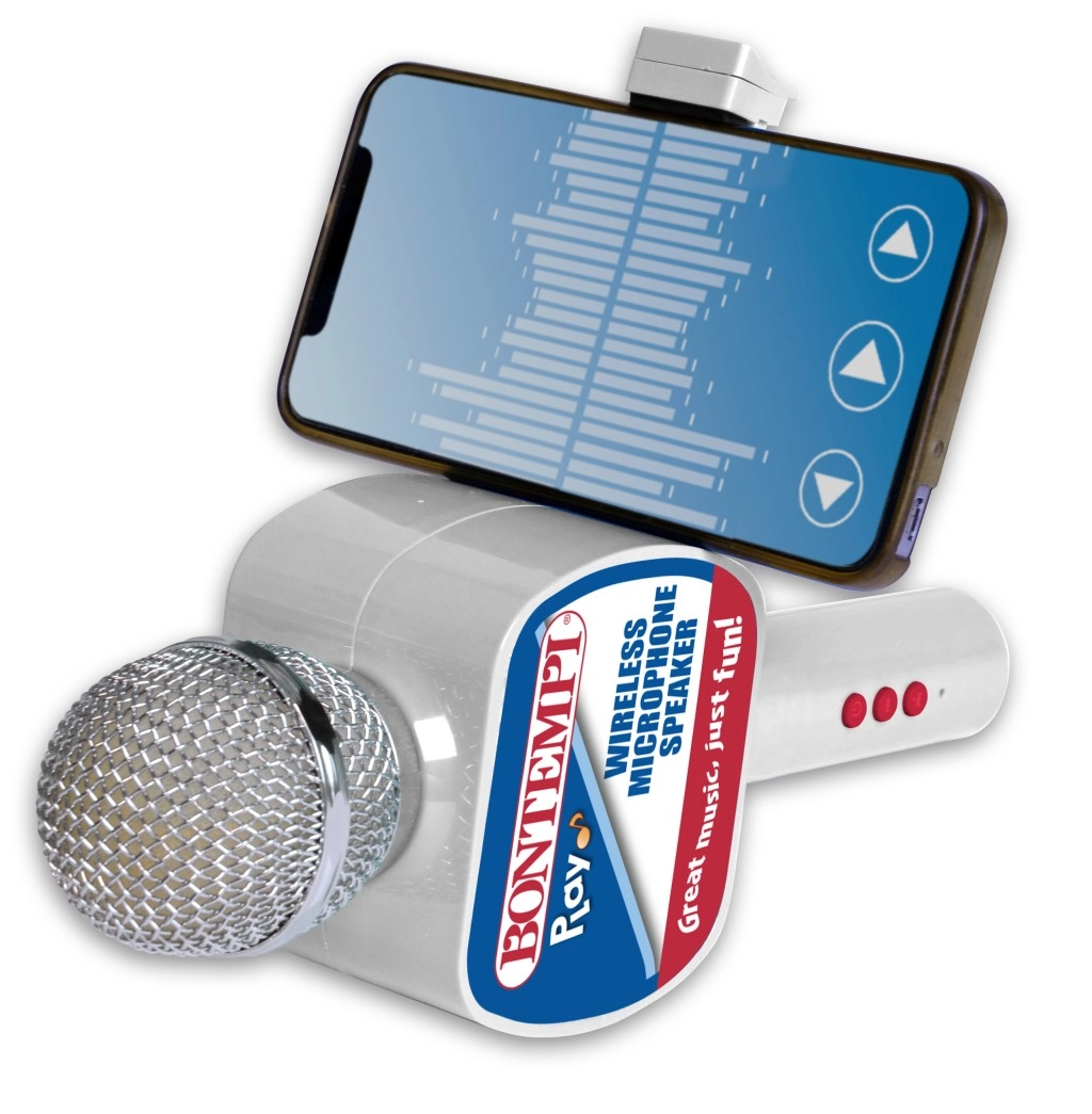 Ciesz się karaoke kiedy chcesz i gdzie chcesz dzięki temu praktycznemu bezprzewodowemu mikrofonowi. Dzięki wbudowanemu głośnikowi, bezprzewodowemu połączeniu i prostemu sterowaniu jest idealny do domowego śpiewania, imprez i dziecięcych przyjęć. Uchwyt na telefon oraz efekt echa zapewnią jeszcze więcej zabawy.