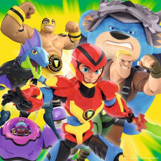 Ten zestaw zawiera trzy oddzielne obrazki po 49 elementów (razem 147 elementów) z dynamicznymi scenami ze świata Power Players. Dzieci spędzą długie godziny na układaniu, jednocześnie w naturalny sposób ćwicząc koncentrację i wyobraźnię przestrzenną. Dzięki precyzyjnie wycinanym elementom układanie puzzli jest łatwe i daje dużo radości.