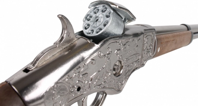 Wejdź do świata kowbojów i westernu z tą dopracowaną w detalach kowbojską strzelbą. Idealna dla małych poszukiwaczy przygód, którzy chcą przeżyć chwile rodem z Dzikiego Zachodu.