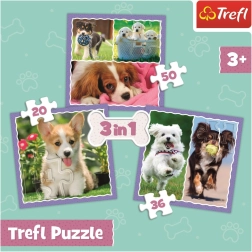 Odkryj z dziećmi świat puzzli z motywem szczeniąt. Ten zestaw 3w1 przynosi aż trzy obrazki w jednym opakowaniu, więc dzieci się nie nudzą, a przy tym stopniowo trenują cierpliwość, koncentrację i motorykę małą. Różny poziom trudności układanek stymuluje rozwój i daje radość z każdego ukończonego obrazka.