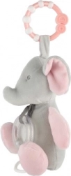Dzięki plastikowemu kółeczku zabawkę łatwo chwycić i można ją przymocować do wózka lub łóżeczka.