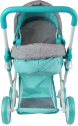 Dolny koszyk pomieści wszystkie akcesoria dla lalki. Wózek można szybko złożyć na płasko, a blokada bezpieczeństwa zapobiega przypadkowemu złożeniu.