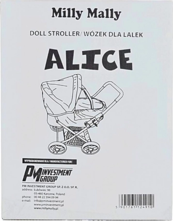 Wózek dla lalek Alice Prestige w eleganckim miętowym kolorze naśladuje prawdziwy dziecięcy wózek, dzięki czemu idealnie nadaje się do kreatywnej zabawy i „opieki nad maluszkiem”. Wyjmowana gondola posłuży także jako nosidełko dla lalek do ok. 40 cm. Miękka poduszeczka i kołderka w zestawie sprawiają, że każdy spacer jest maksymalnie komfortowy.