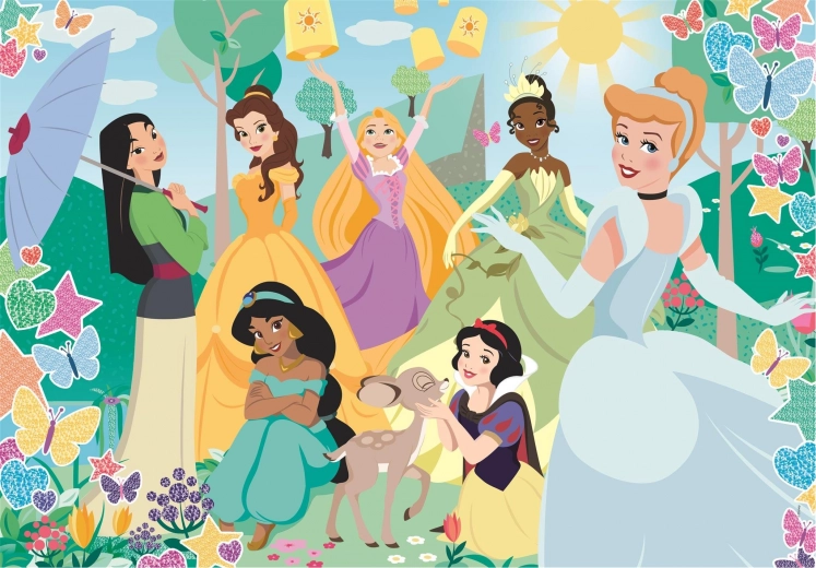 Clementoni błyszczące puzzle Disney księżniczki w ogrodzie 104 elementy