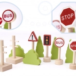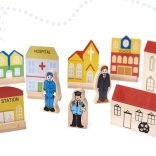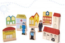 Wszystkie elementy tego zestawu wykonane są z wysokiej jakości drewna z zaokrąglonymi krawędziami, co zapewnia bezpieczeństwo i trwałość podczas zabawy.