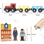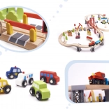 Z tą drewnianą kolejką dzieci czerpią godziny zabawy dzięki 70 elementom, które pobudzają kreatywność i wyobraźnię. Zawiera różne kolorowe elementy i środki transportu.
