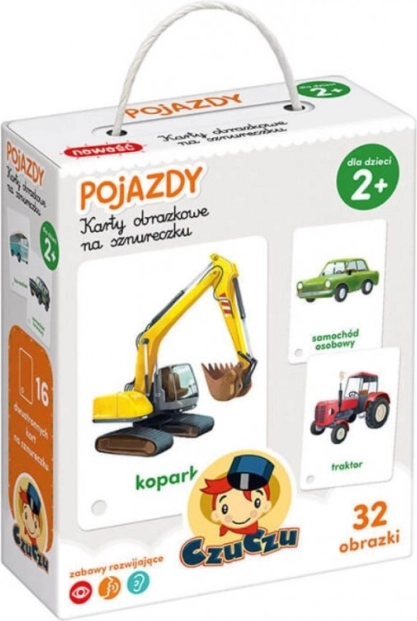 Twórz różne gry z kartami obrazkowymi na sznurku Pojazdy! Możesz na przykład: