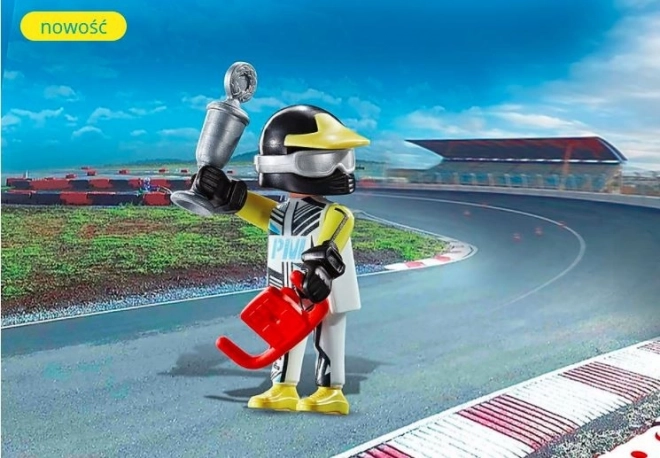 Figurka PLAYMOBIL Playmo-Friends kierowca wyścigowy ucieszy wszystkich małych fanów motorsportu. Zawodnik pilnie trenuje i na mecie świętuje zwycięstwo z pucharem. W opakowaniu znajdziesz 1 figurkę i akcesoria, które rozwiną dziecięcą wyobraźnię i scenariusze zabaw.
