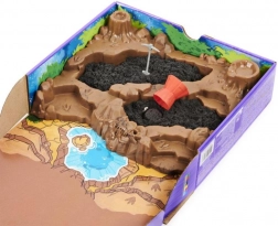 Wytrzymała taca z reliefem skał i krateru utrzymuje piasek na miejscu i inspiruje do tworzenia scen oraz kierowania strumieni „lawy”.