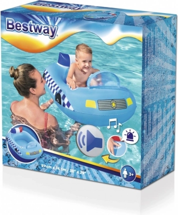 Łódeczka jest idealna do oswajania dzieci z wodą – zapewnia wsparcie i pewność, a jednocześnie pobudza zabawną wyobraźnię dzięki detalom takim jak „koła”, kratka czy policyjne elementy. Świetny wybór do basenu i na spokojne akweny.
