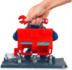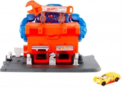 Wybierz się do warsztatu i spróbuj naprawić swoje auto, ale uważaj! W środku czeka przerażająca gorylica! Każdy zestaw łączy się z innymi zestawami Hot Wheels City dzięki nowemu systemowi i jest kompatybilny z pomarańczowym torem.