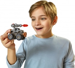 Łatwy w montażu truck z masywnymi oponami, dopracowaną karoserią i działającym wyrzutnikiem do bitew i kaskaderskich trików.