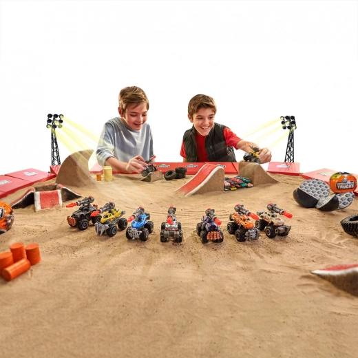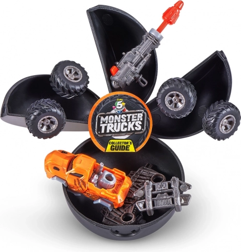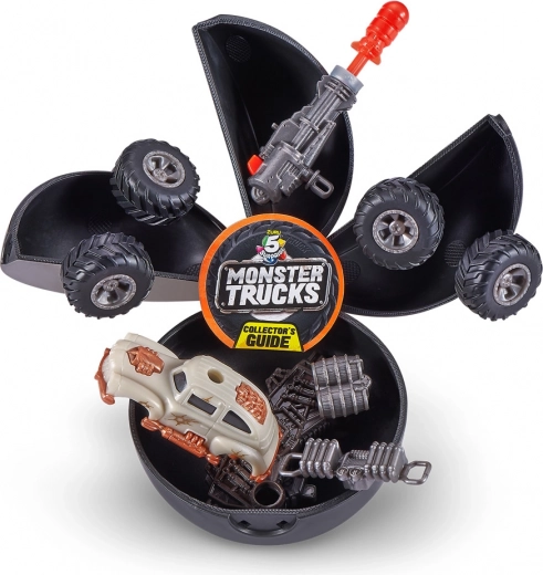 Nowa seria 5 SURPRISE Monster Trucks to emocjonujące rozpakowywanie i świetna, dynamiczna zabawa. Wewnątrz kapsuły znajdziesz części do złożenia mini monster trucka: masywne terenowe koła, ramę, zderzaki, karoserię oraz wyrzutnik do akcyjnych pojedynków. Rozpakuj, zbuduj, ścigaj się i walcz!