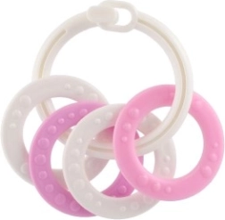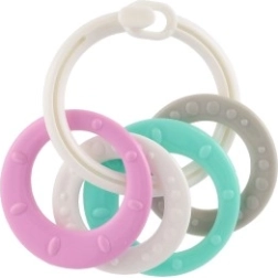 Zestaw gryzaków z kolorowymi plastikowymi kółkami