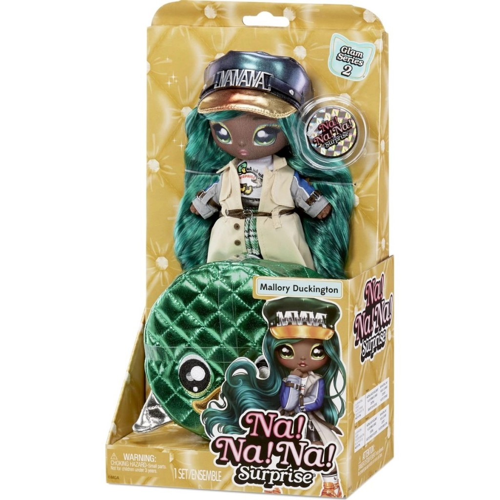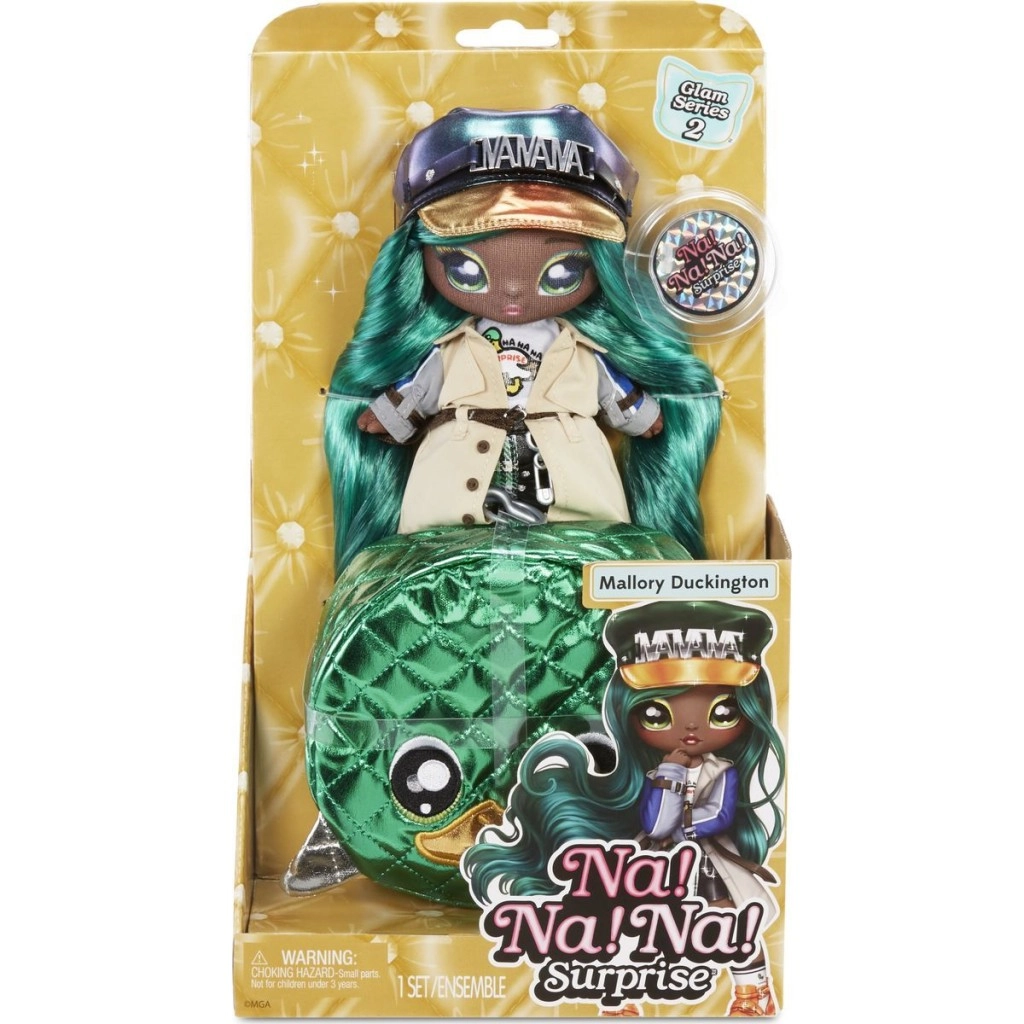 Odkryj magię lalki Na! Na! Na! Surprise. Z tą mięciutką modową lalką i stylową torebką na zamek, wykonaną z połyskującej metalicznej tkaniny, zachwycisz od pierwszego spojrzenia. Lalka ma piękne, misternie malowane oczy i długie rzęsy, które dodają jej wyjątkowego uroku. Torebka jest idealna do schowania lalki lub różnych drobiazgów.