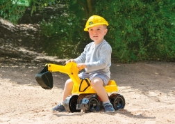 Koparka została zaprojektowana do bezpiecznej zabawy na zewnątrz i w domu. Praktyczna blokada zabezpiecza obrót podczas przenoszenia lub zabawy młodszych dzieci, a duża powierzchnia siedziska zapewnia wygodę i pewność. Idealny towarzysz do piaskownicy, ogrodu i na place zabaw.