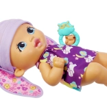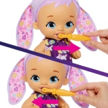 Odkryj świat delikatnej opieki z lalką My Garden Baby – króliczym niemowlęciem, które kocha przytulanie i codzienne rytuały. Dzieci mogą myć jej ząbki dołączoną szczoteczką i „pastą”, karmić ją i układać w kołysce stworzonej z opakowania. Dwustronna sukienka zmienia wygląd ze słonecznego dnia na nocne usypianie – idealna do zabaw w dzień i noc.