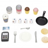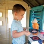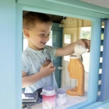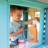 Domek zawiera 18 różnych plastikowych akcesoriów, takich jak naczynia i zabawki do jedzenia, które rozwijają wyobraźnię i kreatywność dziecka.