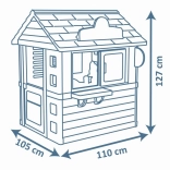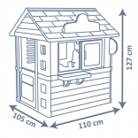 Domek jest wyposażony w solidne i stabilne podwójne plastikowe ściany, które wytrzymują niekorzystne warunki pogodowe i silne wiatry. Wymiary 98 x 110 x 127 cm z całkowitą wysokością 127 cm umożliwiają wygodną zabawę. Zabawki spełniają najwyższe standardy bezpieczeństwa.
