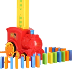 Interaktywna lokomotywa układająca domino zamienia każdą zabawę w widowisko. Automatycznie rozstawia kostki w równych odstępach, czemu towarzyszą efekty świetlne i dźwiękowe. Wystarczy ustawić kierunek jazdy za pomocą komina i obserwować, jak powstają długie szeregi, które można efektownie przewrócić. Świetny prezent dla dzieci, wspierający kreatywność i małą motorykę.