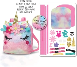 Zestaw do szycia – plecak z jednorożcem – to idealny pomysł na zajęcia w czasie wolnym. Dzięki temu zestawowi każda dziewczynka może uszyć plecak o wymiarach około 23 cm x 20 cm x 6,5 cm, który będzie doskonałym uzupełnieniem modnej stylizacji. Zestaw zawiera: filcowe i pluszowe elementy przygotowane do szycia, elementy ozdobne, nić, plastikową igłę, instrukcję.