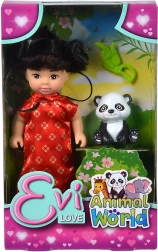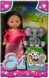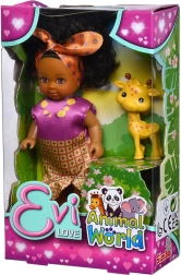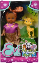 Lalka Evi Love jest gotowa na przygody razem ze swoimi małymi przyjaciółmi z królestwa zwierząt. Wybierz spośród trzech wersji tej uroczej zabawki: Azjatka z pandą, Afrykanka z żyrafą lub Hinduska ze słoniem. Każda lalka jest unikalna i przynosi okazję do kreatywnej zabawy.