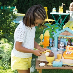 Dzieci mogą mieszać orzeźwiające napoje, serwować lody gałkowe i dekorować je słodkimi posypkami. Realistyczne akcesoria zamieniają każdą zabawę w mały letni festiwal smaków.