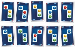 Zawartość pudełka: plansza, 55 kart z układami, 8 pionków, instrukcja.