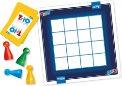 Trio to żwawa gra towarzyska, w której przesuwasz pionki na planszy tak, aby utworzyć układ zgodny z jedną z odkrytych kart. Gdy tylko go zauważysz, zawołaj „Trio!” i weź kartę. Wygrywa ten, kto zbierze najwięcej kart. Dzięki klarownym zasadom idealnie nadaje się dla rodzin, przyjaciół oraz do gry solo.