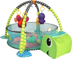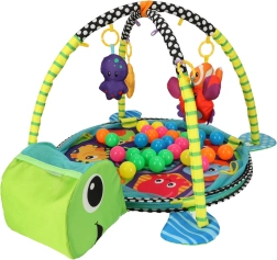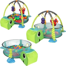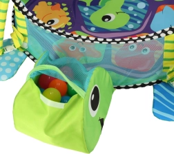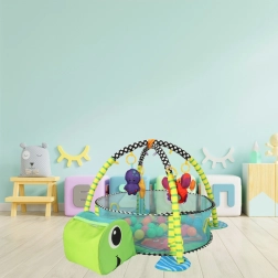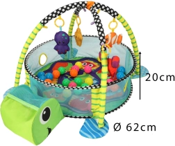 Edukacyjna mata żółw z kojcem i piłeczkami to kolorowa, miękka i multifunkcyjna mata, idealna dla dzieci już od urodzenia. Wykonana z wysokiej jakości materiałów, zapewnia bezpieczeństwo i wspiera rozwój dziecka. To nie tylko mata do zabawy, ale także suchy basen z piłeczkami, który dostarczy mnóstwo radości i bodźców sensorycznych.
