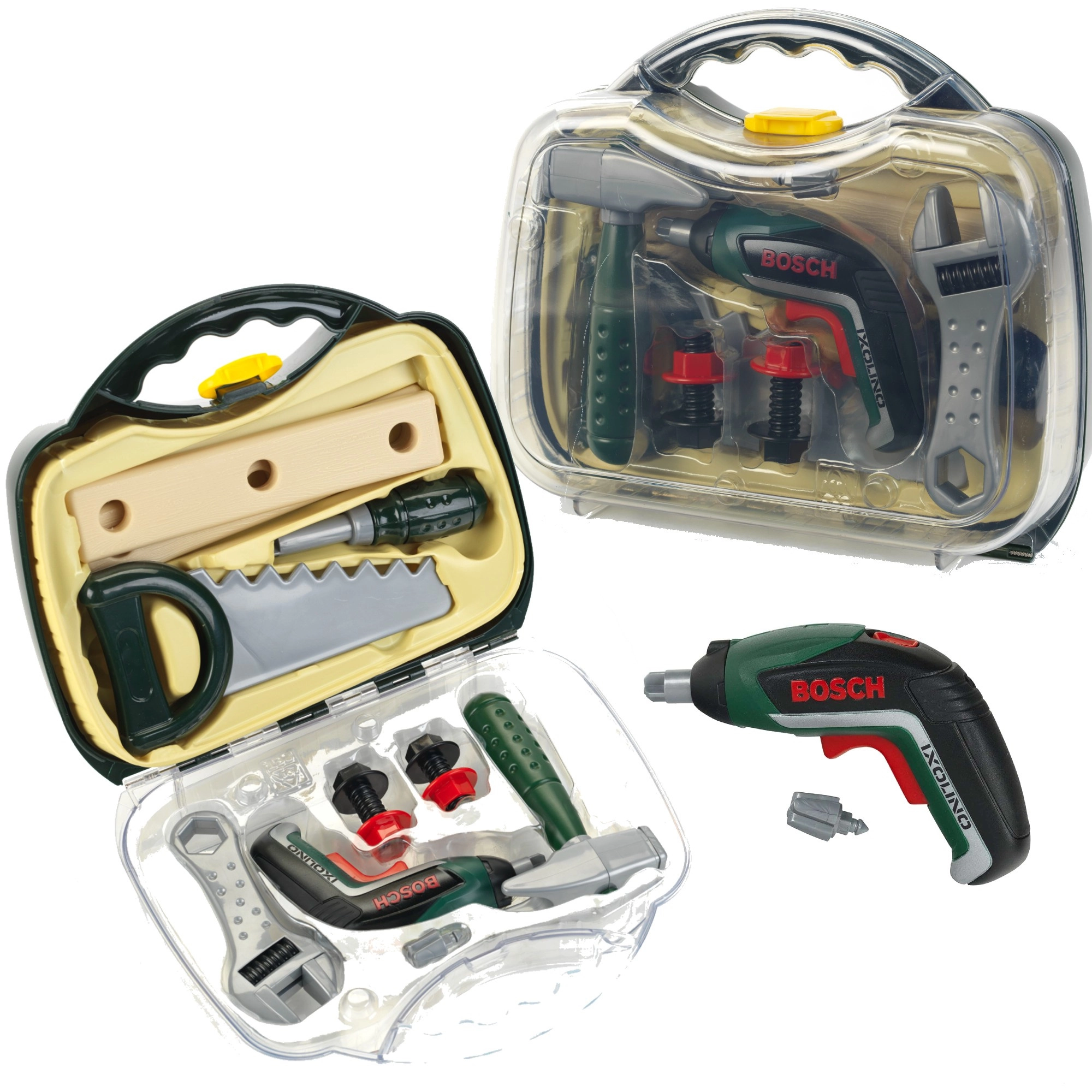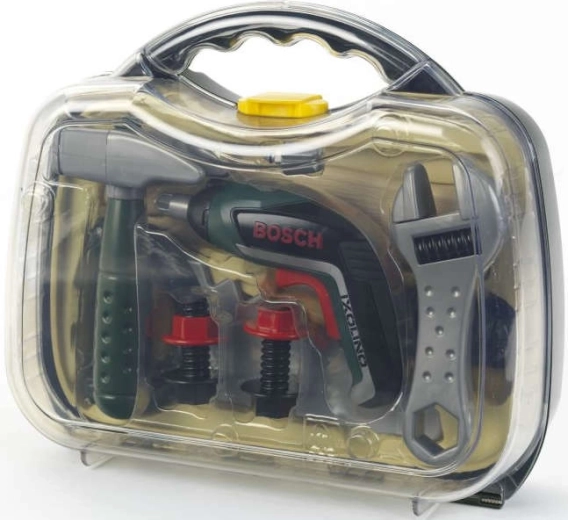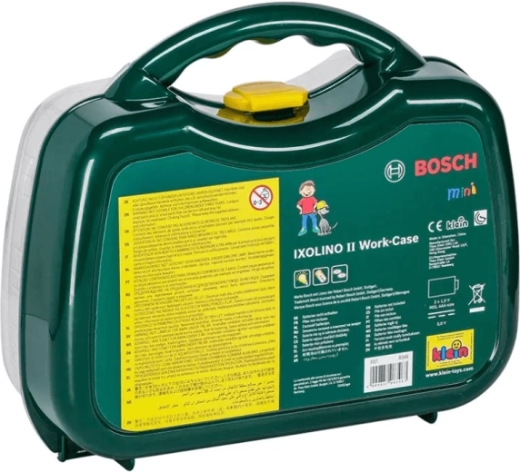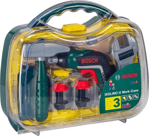 Dziecięca walizeczka z narzędziami z licencjonowanej serii BOSCH Mini marki KLEIN oferuje realistyczną zabawę w majsterkowicza. W środku znajduje się wkrętak akumulatorowy Ixolino II na baterie z obrotami w prawo/lewo i dźwiękiem silnika, uzupełniony o inne wytrzymałe narzędzia. Solidna ciemnozielona walizeczka z przezroczystą pokrywą i dwoma czerwonymi zamkami bezpiecznie trzyma wszystko w jednym miejscu i jest idealna dla małych majsterkowiczów od 3 lat.