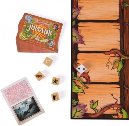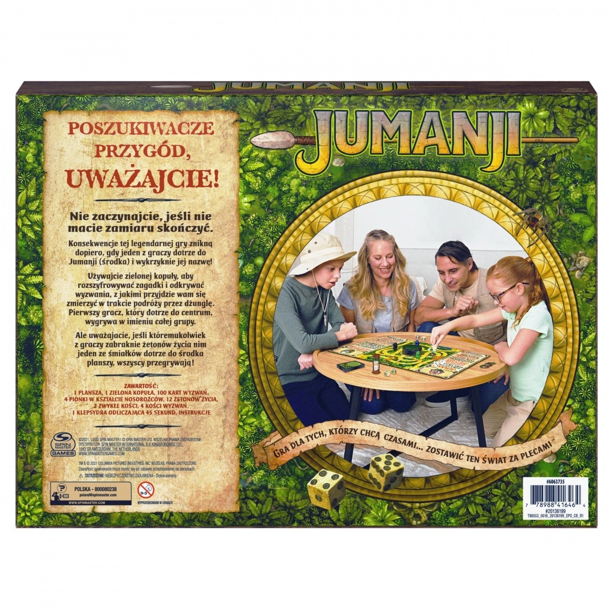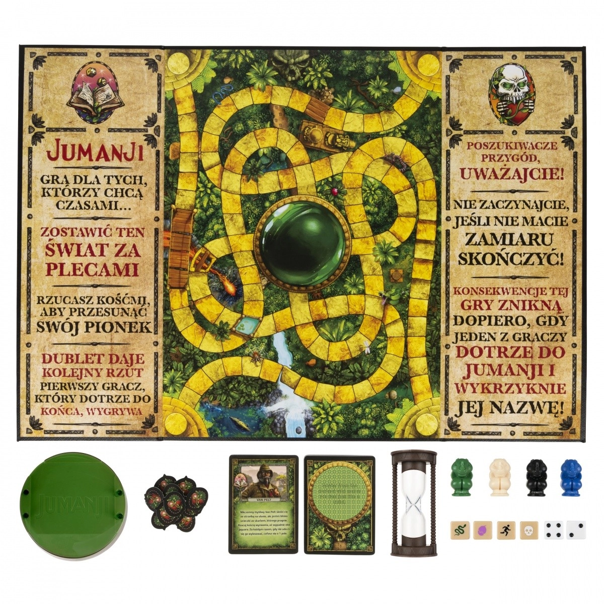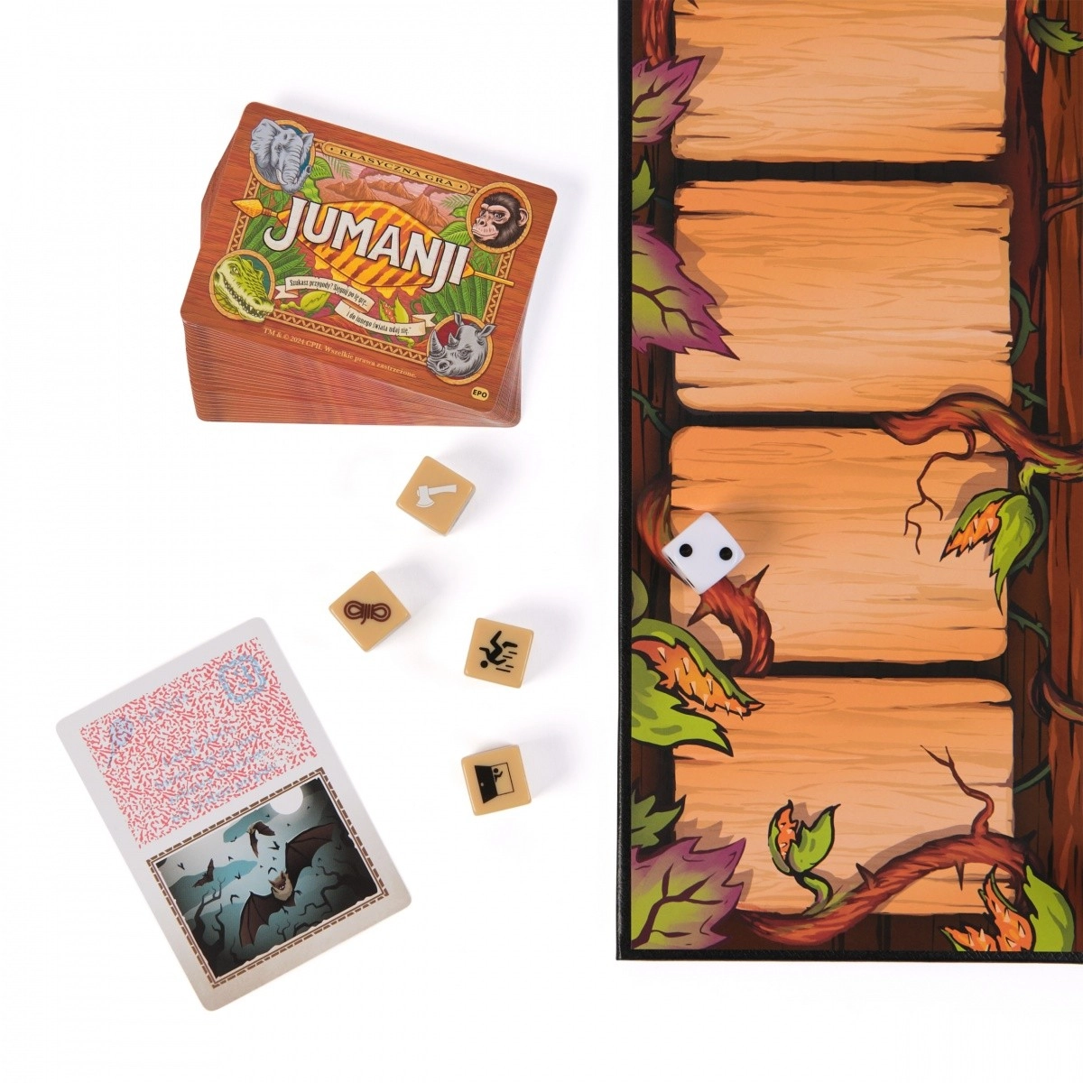 Waszym wspólnym celem jest dotrzeć do centrum planszy i wykrzyknąć „JUMANJI”, zanim któremukolwiek z graczy skończą się wszystkie żetony. Przegrywacie i wygrywacie razem – gra idealnie nadaje się na rodzinne wieczory oraz dla paczki przyjaciół lubiących szybkie, interaktywne i pełne emocji gry.