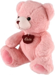 Miś ma na piersi serduszko z napisem „Cute”, co dodaje mu uroku i charakteru.