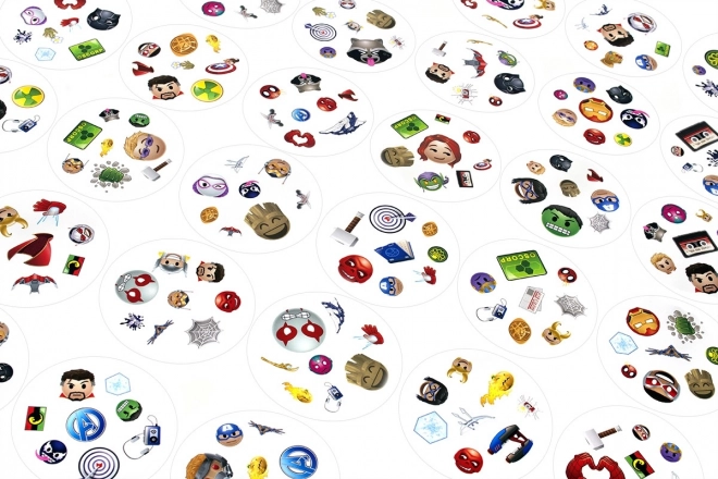 Dobble Marvel Emoji to dynamiczna gra na spostrzegawczość z 55 okrągłymi kartami pełnymi superbohaterskich symboli i emotikonów. Każda para kart ma zawsze dokładnie jeden wspólny obrazek – znajdź go jak najszybciej, wypowiedz na głos i wykonaj akcję zgodnie z wybranym trybem gry.