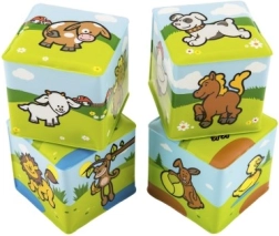 Każdy klocek ma wyraziste kolory i zabawne motywy zwierząt, które pomagają rozwijać rozpoznawanie kształtów i kolorów, koordynację ręka–oko oraz pierwsze słownictwo. Praktyczne opakowanie po 4 sztuki jest idealne do domu i na wyjazdy.