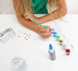 W opakowaniu znajdują się 3 wazony gotowe do ozdabiania, pędzelek, ozdobne kamyki oraz masa plastyczna do odrysowywania kształtów. Dzieci będą czerpać radość z tworzenia, a piękny efekt końcowy ozdobi pokój lub sprawi radość jako prezent.