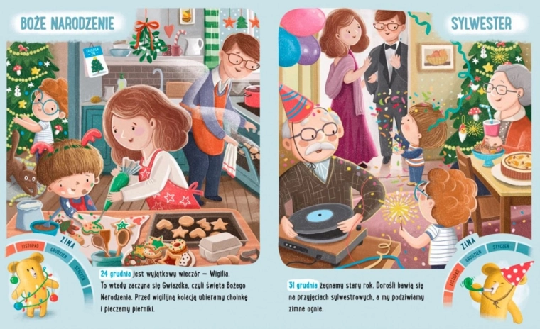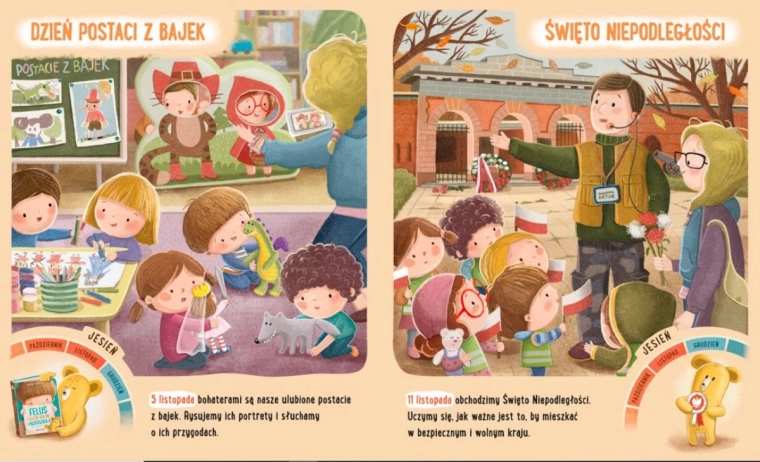 "Felek i Gucio świętują" to urocza książka autorstwa Katarzyny Kozłowskiej z ilustracjami Marianny Schoett, która wprowadza dzieci w świat różnych świąt i tradycji. Na swoich stronach łączy wiedzę i zabawę, gdzie mali czytelnicy odkrywają: