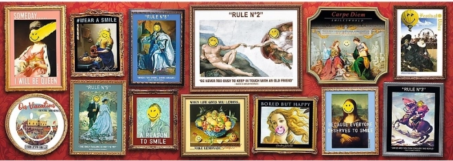 Panoramiczne puzzle z wesołym motywem SMILEY Galerie zapewnią godziny spokojnej rozrywki dla dorosłych i starszych dzieci. Format panorama po ułożeniu doskonale wygląda we wnętrzu, a dzięki wysokiej jakości nadrukowi wszystkie detale pięknie się wyróżniają.
