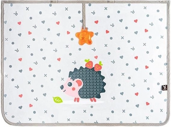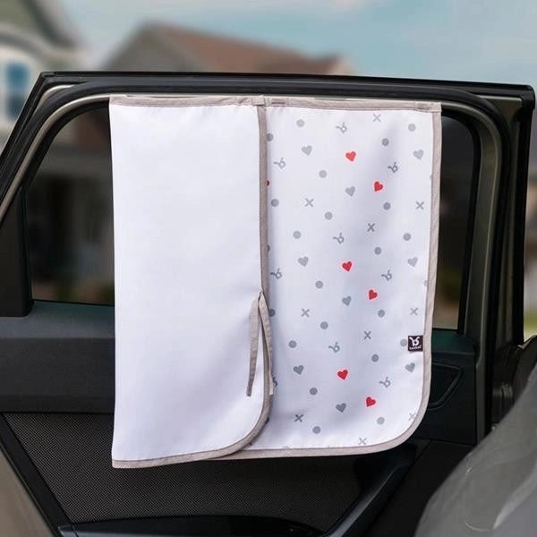 Montaż jest bardzo prosty dzięki czterem mocnym magnesom, które szybko i bezpiecznie mocują osłonę do ramy drzwi bez użycia przyssawek czy haczyków. Gdy osłona nie jest potrzebna, można ją łatwo złożyć i związać za pomocą wszytych pasków, co ułatwia przechowywanie. Specjalna gwiazdka z błyszczącym efektem dodatkowo zapewnia rozrywkę małym pasażerom, dzięki czemu podróż mija szybciej.