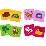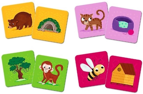 Gra zawiera 36 kart z barwnymi ilustracjami zwierząt i przedmiotów, które zachwycą każde dziecko.