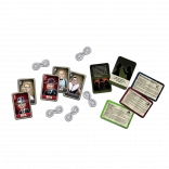 Zawartość pudełka: 6 kart Mafii, 12 kart Obywateli, 18 kart Podpowiedzi, 18 kart Motywów, 2 karty Przewodnika, 18 żetonów Kajdan, instrukcja.