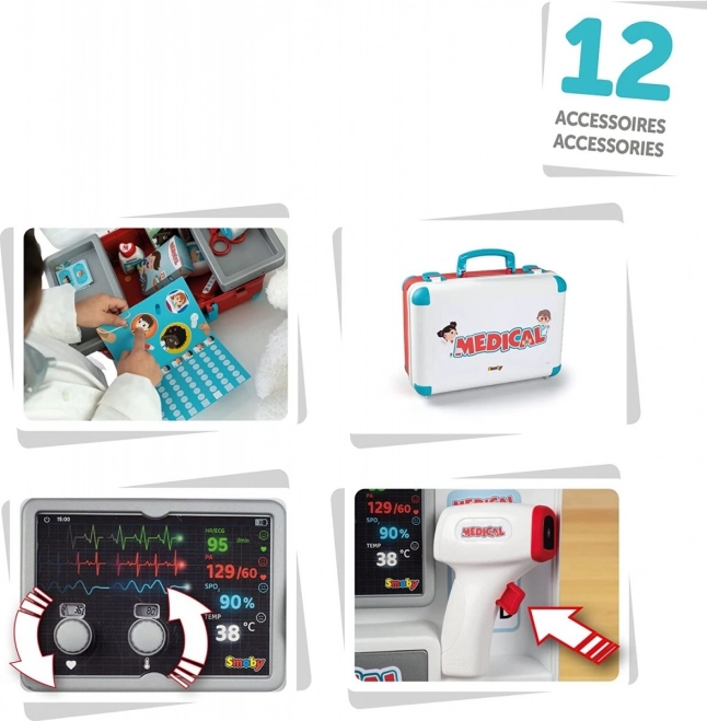 Daj swojemu dziecku możliwość zostać małym lekarzem z tym bogato wyposażonym zestawem lekarskim od Smoby. Dzięki 12 elementom, takim jak mechaniczny termometr, stetoskop i strzykawka, Twoje dziecko będzie miało wszystko, co potrzebne do opieki nad swoimi 'pacjentami'.